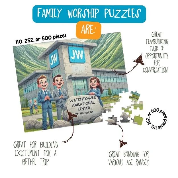 Turn your family worship evening into an adventure with our stunning puzzle featuring the world headquarters of the Watchtower Educational Center in Patterson, New York! Available in 110, 252, or 500 pieces, this puzzle isn’t just a fun challenge—it’s an imaginative trip to Patterson Bethel.